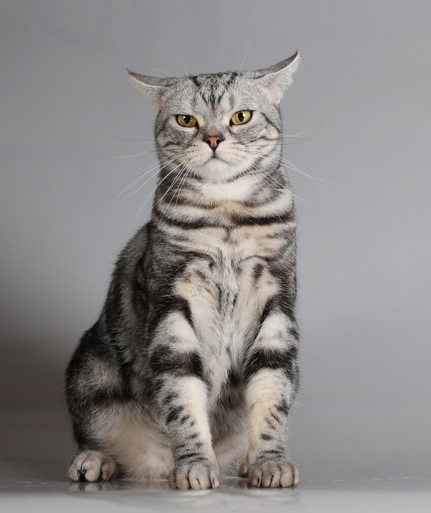 Американская короткошерстная кошка давно покорила сердца людей, так в США эти кошки прочно обосновались в домах своих владельцев еще 1965 году. А предки американской короткошерстной кошки попали в Америку еще три столетия тому назад, поучаствовав в создании таких независимых пород, как бомбей, оцикат, мейн-кун и многие другие. По стандарту американская короткошерстная кошка принадлежит к тяжелому типу. Наиболее ярко представляю породу самцы, они большие, мощные животные с отменно развитой грудной клеткой, средними по длине ногами, округлыми лапами, среднего размера ушами и с сужающимся, закругленным к концу хвостом. У американской короткошерстной кошки заметно развиты щеки, возможно из-за этого, морда производит впечатление округлой, хотя ее длина превосходит ширину. Глаза у кошки круглые, наискось и широко поставленные. Их цвет может принимать зеленый, желтый, голубой или медный оттенок. Американская короткошерстная кошка является обладательницей мягкой и шелковистой шерсти.