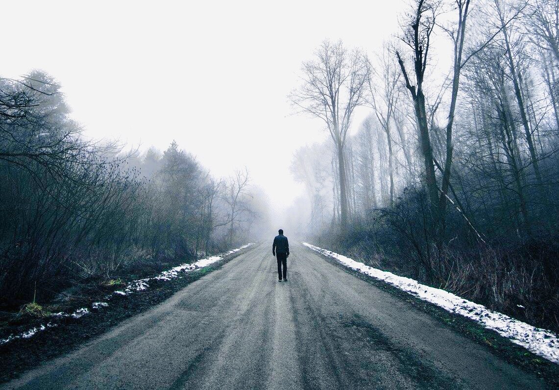 Остановились мы перед трассой. Человек указал рукой на саму дорогу.