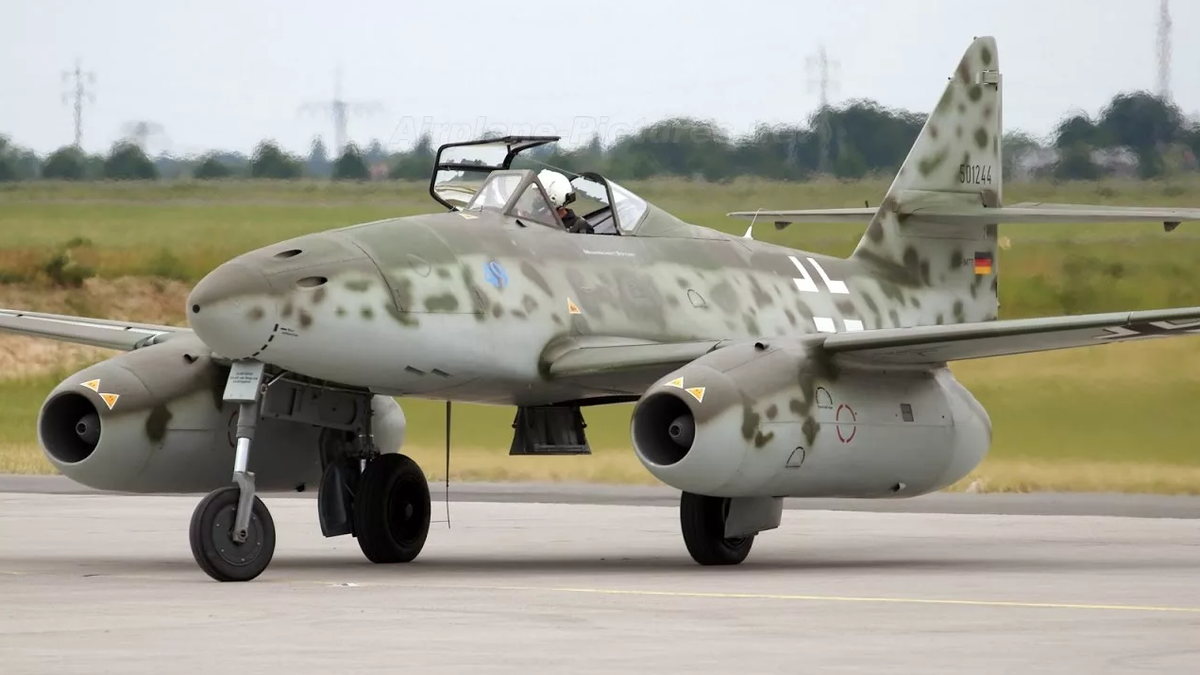 Первый в мире реактивный боевой самолет. 900 км/ч. Это был прорыв. Использовался в роли истребителя-перехватчика