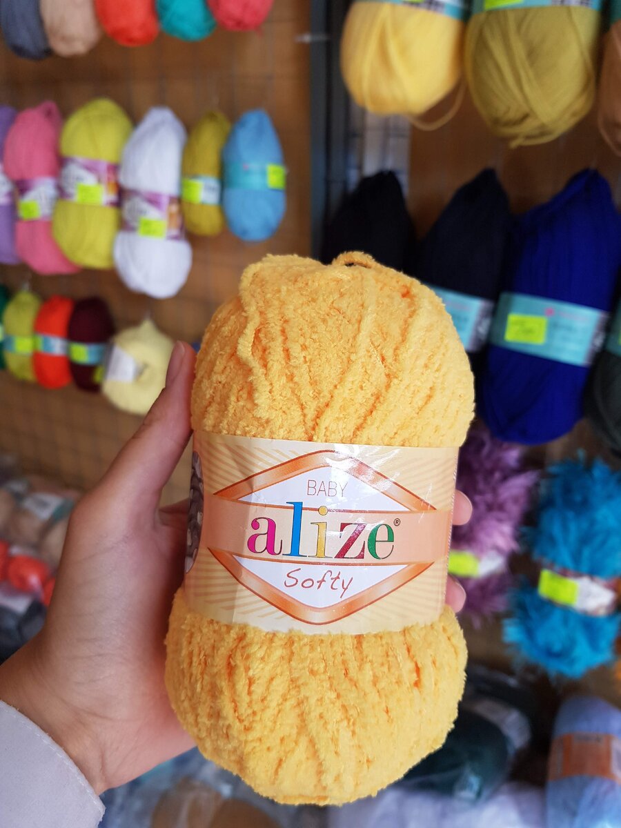 Демисезонная плюшевая пряжа Alize Softy отличается своей пушистой нитью. Из этой пряжи получается красивое махровое полотно. Нить имеет ровный окрас и широкую палитру цветов. Один моток состоит из 50 грамм пряжи и имеет длину 115 метров.