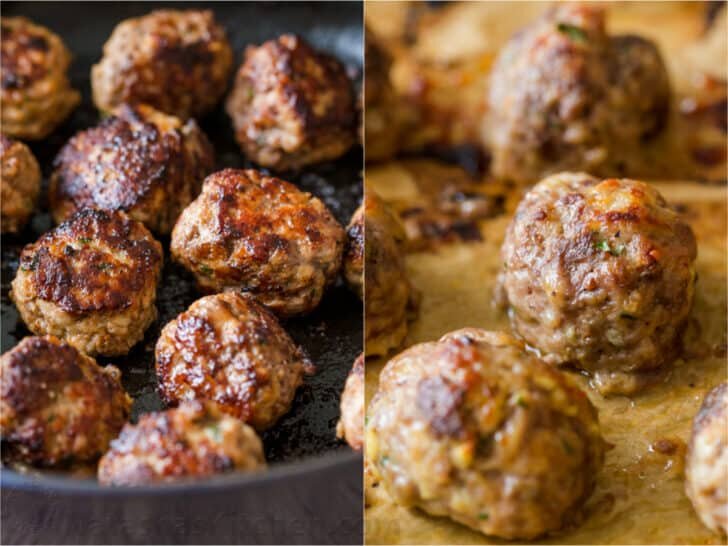 Каждый элемент в этом рецепте создает ароматные фрикадельки, но по-настоящему сочными их делает добавление панировочных сухарей. Здесь мы используем сочетание мяса, смешивая свиной и говяжий фарш с яйцом. Эта комбинация дает лучший вкус. Простые ингредиенты и делают эти фрикадельки по-итальянски вкусными с добавлением сыра пармезан, чеснока и петрушки. Вам понадобится: Вот наш лучший совет по приготовлению самых сочных пухлых фрикаделек. Избегайте этих распространенных ошибок, из-за которых фрикадельки могут стать жесткими и сухими. Как приготовить фрикадельки: 1. Смочите хлеб: удалите корку и нарежьте 3 ломтика хлеба кубиками. Поместите в большую миску и смешайте с 2/3 стакана воды. Через 5 минут размять вилкой. 2. Добавьте оставшиеся ингредиенты: в ту же миску добавьте говяжий фарш, свиной фарш, сыр пармезан, 1 яйцо, измельченный чеснок, петрушку, соль и перец. Размешайте смесь руками. 3. Сформировать фрикадельки: выложить на противень, застеленный пергаментом (2 столовые ложки на к