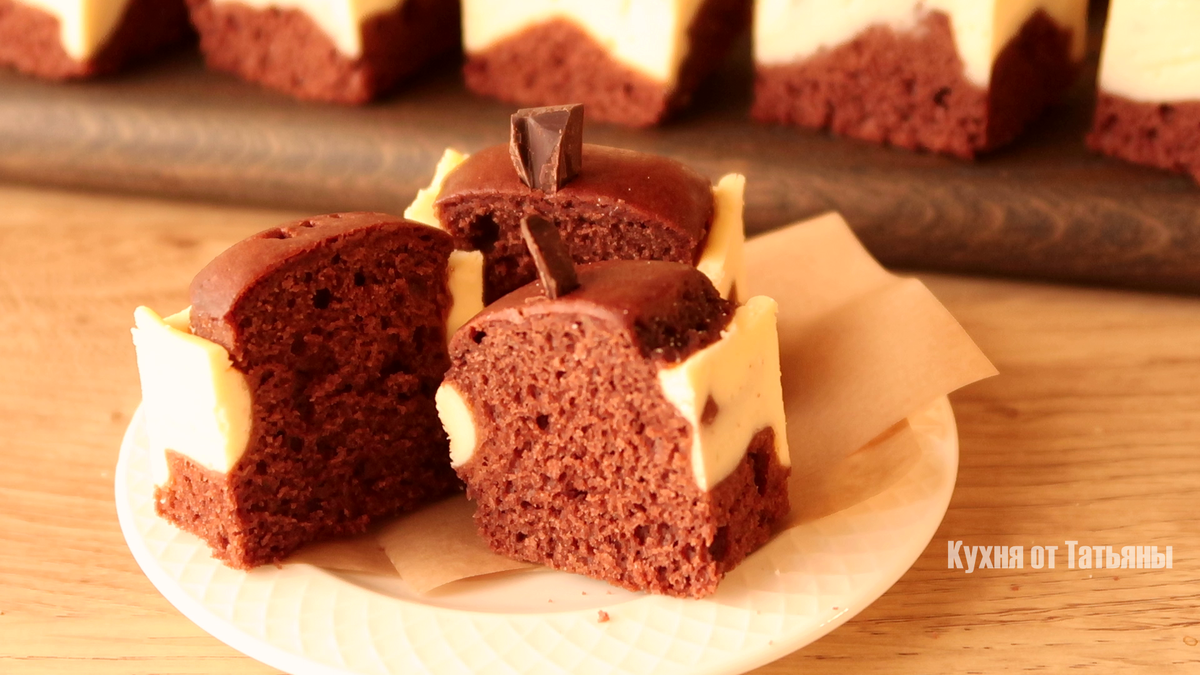 Всем привет. Сегодня, я приготовила шоколадный пирог с нежной творожной начинкой. Мягкий, воздушной, он больше похож на пирожное. Его еще называют пирог - подушка или лоскутное одеяло, за интересный рисунок в виде квадратиков! СПОСОБ ПРИГОТОВЛЕНИЯ: Все продукты для приготовления, должны быть комнатной температуры, надо заранее достать их из холодильника. В глубокую тарелку высыпаю муку, добавляю какао и разрыхлитель. Все сухие ингредиенты перемешиваю между собой. В тарелку для смешивания добавляю творог, высыпаю ванильный сахар и обычный сахар. Разбивая одно яйцо. Перемешиваю блендером, надо получить пастообразную массу без комочков. Высыпаю крахмал и перемешиваю лопаткой. Получается воздушная творожная масса, похожая на крем. В другую тарелку добавляю 3 яйца, высыпаю соль, ванильный сахар и обычный сахар. Взбиваю продукты миксером. Масса должна увеличиться в объеме и посветлеть. Добавляю в неё растительное масло без запаха и продолжая перемешивать, выливаю молоко. Насыпаю муку
