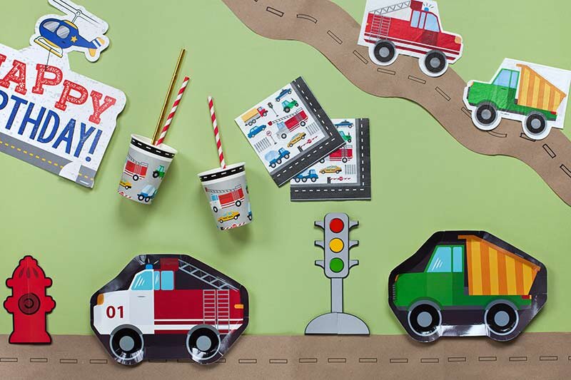 Если вы ищете идеи для праздника по случаю дня рождения мальчика, вам точно понравится замечательная коллекция сервировки и декора с машинками. Герои этой праздничной линейки – машины служб быстрого реагирования: полиция, скорая помощь, пожарная машина, а также самосвал и вертолет. Дополнительные аксессуары – дорожные знаки, светофор, пожарный гидрант. Эта коллекция праздничных товаров – хит среди маленьких виновников торжества, которые обожают красивые большие машины и любой другой транспорт. Машинки – лучшие друзья почти всех мальчишек. Сервировку для праздника с машинками с машинками можно подобрать в зависимости от возраста именинника. Фигурные праздничные тарелки и салфетки в виде скорой помощи и самосвала особенно порадуют малышей. Круглые бумажные тарелки, бумажные стаканы и салфетки с разными машинками подойдут для детей любого возраста. Одноразовые праздничные бумажные стаканы со множеством машинок отлично сочетаются и с фигурными, и с круглыми тарелками. Скатерть можно подобр
