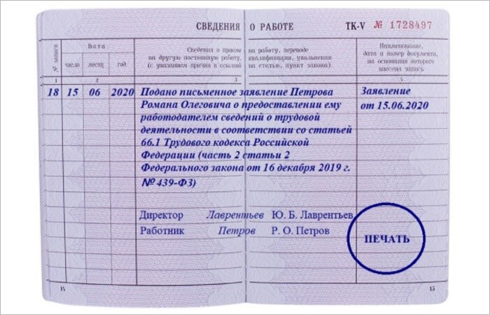 Формированием данных для электронных трудовых книжек занимаются работодатели. Если по каким-либо причинам вы не работаете, то никаких действий предпринимать не нужно до тех пор, пока не решите выйти на работу. При трудоустройстве до 31.12.2020 г. кадровик компании-работодателя предложит определиться с форматом трудовой книжки и заполнить один из 2-х вариантов заявления. Вариант 1 Вариант 2 Внимание! В любом случае работодатели, начиная с 01.01.2020 г., по всем кадровым перемещениям направляют информацию по каналам ЭДО в ПФР для их фиксации в электронных трудовых книжках. То есть, на весь персонал, независимо от выбранного формата документа, в обязательном порядке Фондом формируется его электронный вариант. Разница лишь в том, что при выборе ЭТК, работник получает трудовую книжку на руки и больше в ней никогда никаких записей делаться не будет. При выборе бумажного варианта кадровая служба компании вынуждена подавать сведения в электронном виде в Пенсионный фонд и параллельно делать ана