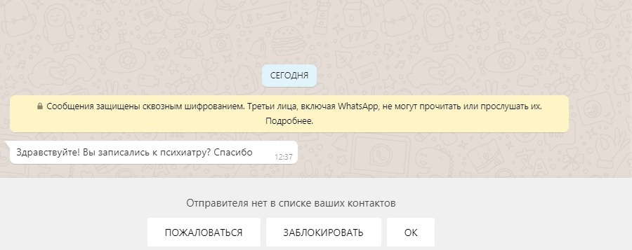"Здравствуйте. Вы записались к психиатру? Спасибо" — гласило оно.