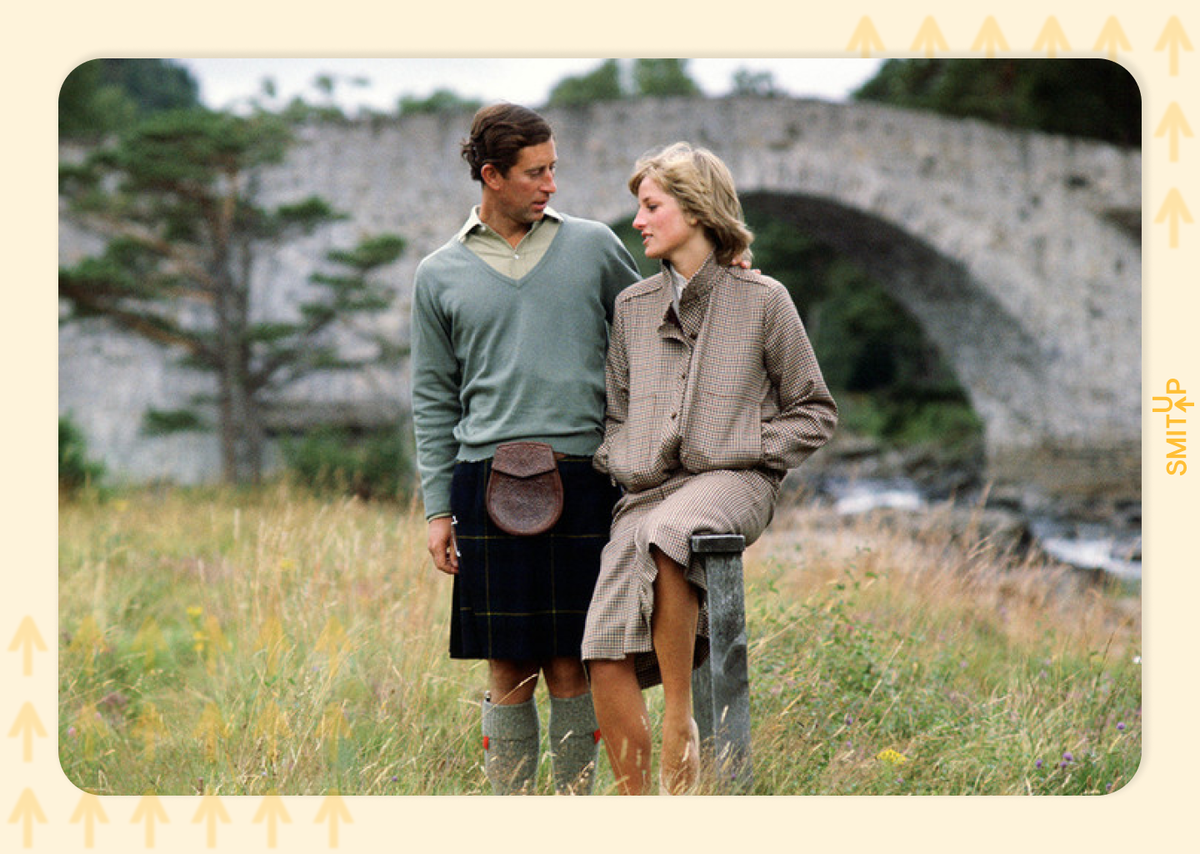 Одной из особенностей гардероба принцессы было то, что она выбирала наряды, учитывая особенности и культуру местности, в которую отправляется. Медовый месяц прошел в Шотландии, а потому Диана выбирает костюм в клетку. Кстати, принцесса всегда предпочитала английских дизайнеров, в отличие от, например, Меган Маркл.