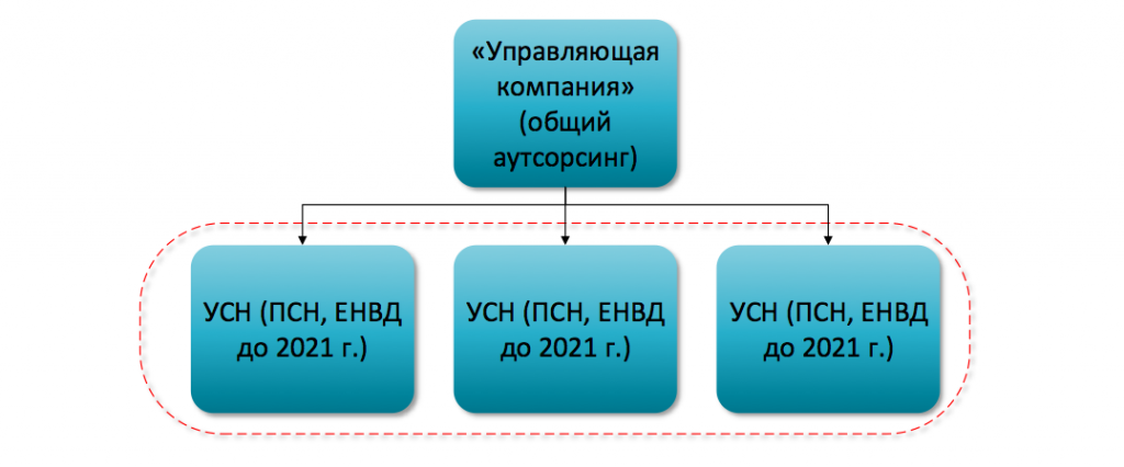 Очевидно, что сама по себе такая структура не может являться способом получения необоснованной налоговой выгоды: каждый из участников группы компаний в отдельности имеет право применять специальный налоговый режим. Но при наличии определённых признаков, налоговый орган приходит к выводу о том, что структура является дроблением, что дает основание для объединения выручки участников группы компаний, доначисления НДС и налога на прибыль (с учетом подтвержденных вычетов по НДС и расходов по налогу на прибыль: практику определения действительных налоговых обязательств можно считать устоявшейся).