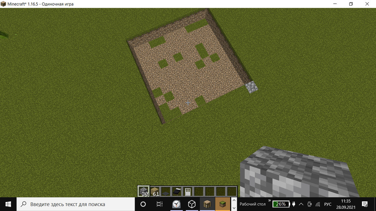 Привет , спасибо за то что не отписываетесь , но сегодня я буду строить хижину для выживания , не буду томить , погнали . Скриншот сделать не получилось , по непонятным причинам Нам понадобится 30 бл. булыжника , и желательно 60 - 61 бл. любого дерева , необязательно ковер , черный , и железная дверь. Сначала надо выкопать дыру 10х10 , а глубина 1 блок Потом надо положить ковер на весь периметр ямы Делаем такой слой, как показано на скриншоте Делаем еще один слой только деревом , делаем крышу деревом , расcтавляем факелы . Все готово! На этом все , надеюсь было интересно , пока 😁😁😁😁😁