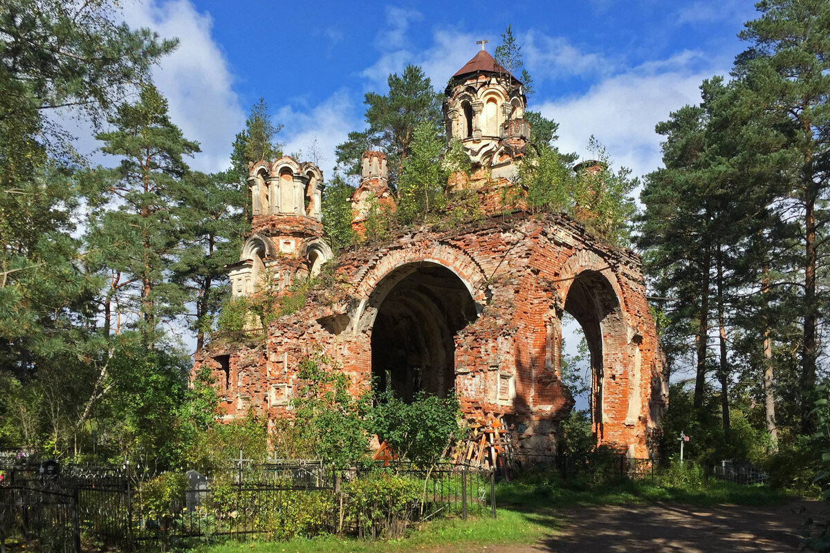 Третий объект или, скорее, группа объектов кладбища - это старинные склепы. Они находятся в разном состоянии. Есть и такие.