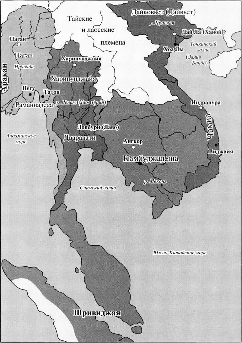 К этому времени в регионе уже сложилась достаточно длительная традиция государственности. Так, на территории Вьетнама как минимум в VII в. до н.э. уже существовали протогосударственные образования, но с I в. до н.э. до IX в. вьетское государство находилось под властью различных китайских империй, с редкими периодами независимости (например, в 541-603 гг. при династии Ранних Ли). Именно в это время в регион проник буддизм, воспринимавшийся как альтернатива не только традиционным верованиям, но и конфуцианству, воспринимаемому как религия завоевателей. Одновременно в центральном Вьетнаме набирало силу государство Чампа, избежавшее китайской оккупации. На территории Мьянмы (Бирмы) существовало несколько государственных образований разного типа (от империи до федеративной талассократии), основанных разными этническими группами: араканцами (Вейшали), пью (Шрикшетра) и монами (Раманнадеша). Эти государства заимствовали из Индии сначала брахманизм, позже вытесненный буддизмом, а также варно-кастовую систему. В первые столетия нашей эры большая часть территории Кабоджи было объединено империей Фунань, просуществовавшей до VII в., после ее распада между новыми государствами началась борьба за ее наследие. На территории Индокитая с III в. шла борьба между племенными союзами и городами-государствами монов и кхмеров, приведшая к образованию монского государства Дваравати и кхмерского Чемла в VII в. Оба государства были слабоцентрализованными, заимствовав из Индии индуизм и буддизм, вместе с варно-кастовой системой. Небольшие государственные образования, самым устойчивым из которых была Шривиджайя, образовавшаяся к VII в., существовали и на территории Индонезии, также испытавшие влияние Индии.