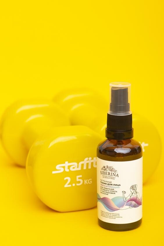 Тоник для лица «Увлажняющий» с гиалуроновой кислотой для любителей активного спорта восполняет баланс влаги, которую кожа активно теряет на тренировке, активизирует синтез эластина и коллагена и успешно борется с первыми признаками старения.