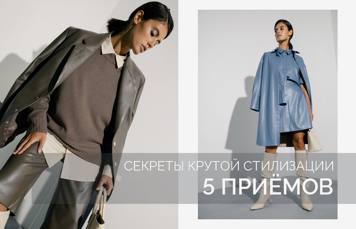 Если вы устали от своих ежедневных сочетаний рубашек с брюками и хотите попробовать что-то новое, сохраните себе эту статью. Сегодня мы раскроем секреты наших стилистов и продемонстрируем 5 способов модного преображения. 1. Выдержанная палитра Определите для своего образа два цвета. Мы остановились на коричневом и молочном. Чтобы комплект выглядел интереснее, комбинируйте в нём разные фактуры: экокожа + трикотаж, хлопок + экомех. Если в вашем гардеробе нет вещей идентичных цветов, вы всё равно можете поэкспериментировать с этим стилистическим приёмом. Выбранные оттенки могут отличаться по светлоте. Например, можно примерить синий трикотажный свитер с одеждой из голубого денима. 2. Акцентный воротник Блузки и рубашки с необычными воротниками могут кардинально поменять настроение всего комплекта. Представьте наш дерзкий плащ из экокожи без этой детали в образе. Важно, чтобы воротник от рубашки был больше или заметно перекрывал эту же часть у верхней одежды. Для такого приёма отличн