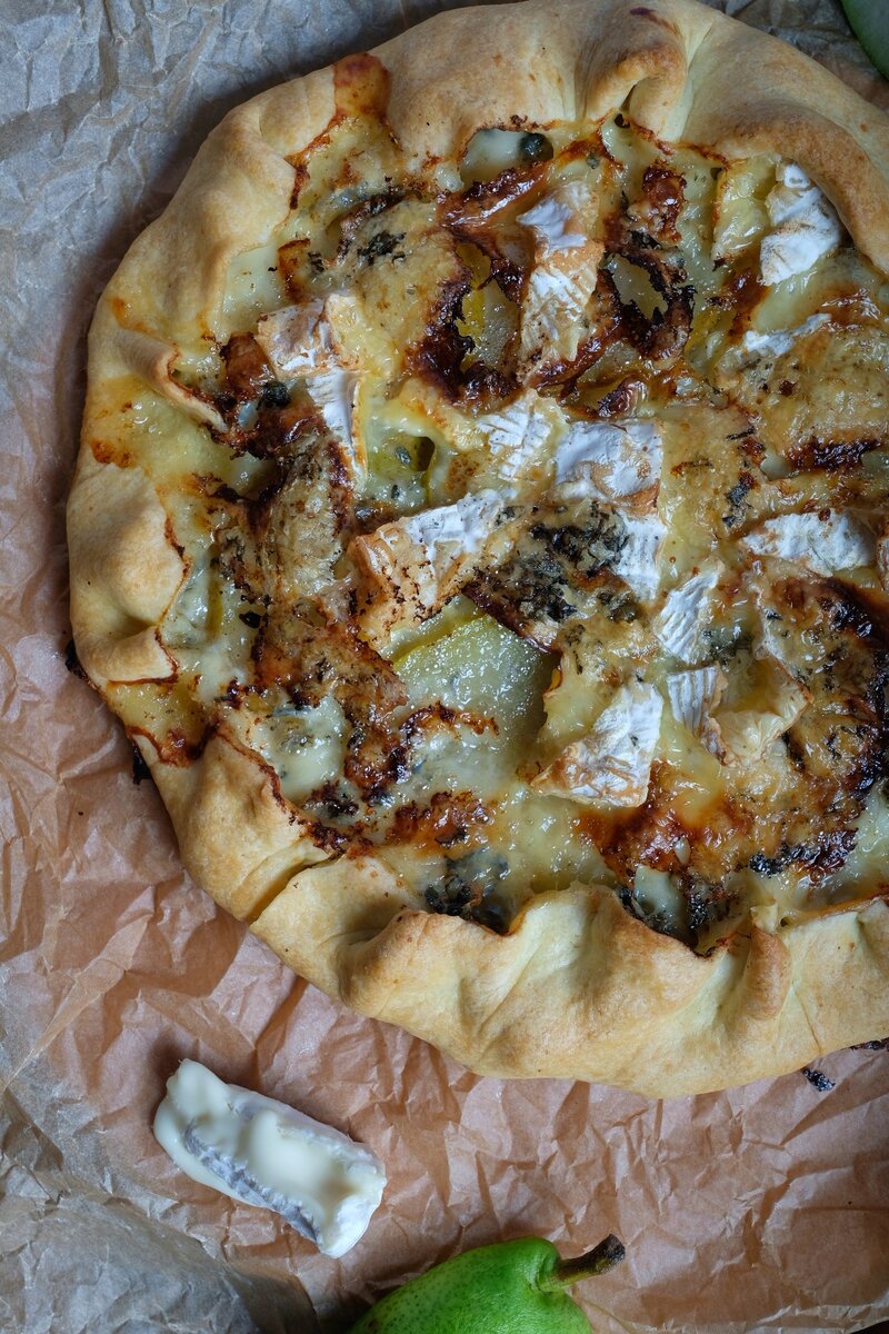 Любителям пиццы с грушей и горгонзолой посвящается... Галета с грушей, сыром с голубой плесенью и сыром бри. С учётом того, что груши и сыр всегда в магазинах, а тесто готовится на раз-два, вкусная выпечка гарантирована практически круглый год. Да и начинку можно менять под свой вкус. Ингредиенты: Здесь теста на 2 галеты. ▶ Тесто:⠀ 200 г пшеничной муки⠀ 125 г холодного сливочного масла⠀ 1/2 ч. л. соли ⠀ 1 яйцо⠀ 2–3 столовые ложки ледяной воды. ▶ Начинка: 100 г сыра с голубой плесенью 125 г сыра бри 2 крупных груши Готовим: 1. Смешайте муку и соль в небольшой миске. Холодное масло натрите на тёрке. Добавьте его к мучной смеси и перетрите пальцами в крошку. 2. Яйцо взбейте вилкой, добавьте в тесто. Затем ледяную воду (постепенно). Замесите тесто до тех пор, пока оно не начнёт склеиваться. Разделите тесто на количество галет, заверните в пищевую пленку и отправьте в холодильник минимум на 30 мин. 3. Груши вымыть, порезать тонкими слайсами (пластинами). 4. Тесто выложить м