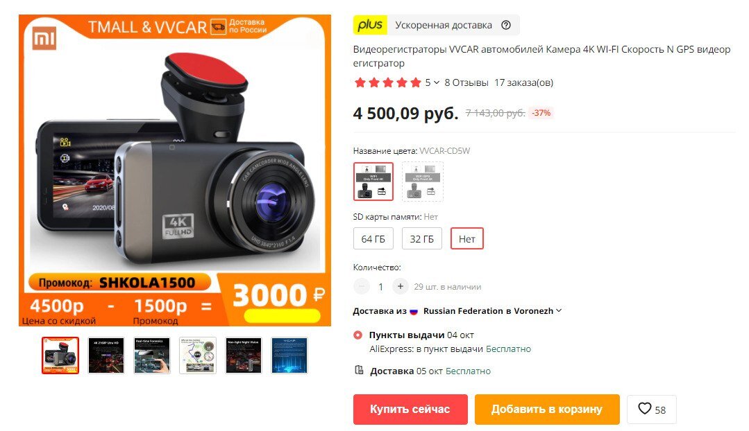 Видеорегистратор VVCAR CD5W за 3000₽ с промокодом: SHKOLA1500 на AliExpress. Достойный регистратор по самой выгодной цене. Записывает видео в 4K и FullHD разрешении, сенсор Sony IMX415, встроенный GPS, угол обзора 170 градусов. Рекомендую! На данный момент лучшая цена!