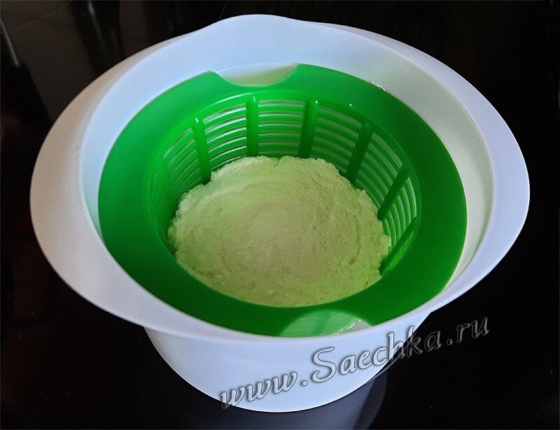 Готовила по инструкции в книжечке за исключением того, что не в микре молоко грела, а на плите. Взяла 600 мл молока, добавила 1/2 ч.л. соли. Стала нагревать и туда же отправила 300 г йогурта "Активия". Размешала несильно венчиком, просто для равномерности. Когда начала створаживаться, поварила ещё 4 минуты. Оставила на полчаса остывать. Отделила сыворотку и сложила полученное в сырницу. Ну и на ночь в холодильник. Кстати, а что делать теперь с сывороткой???