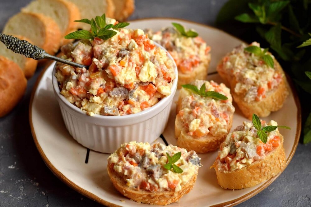 Рецепт селедочной намазки на хлеб. Готовится такая закуска за считанные минуты, главное заранее подготовить филе сельди. Можно самостоятельно разделить тушку или приобрести уже готовое консервированное рыбное филе. Смесь легко и плавно ложится на хлеб благодаря добавлению сливочного масла и мягкого плавленого сыра. Чтобы закуска получилась ярче и красивей, добавляем измельченную отварную морковь. Кроме этого, морковь придает закуске сладковатые нотки. Блюдо можно около недели хранить в холодильнике в стеклянной таре. Ингредиенты: Приготовление: Заранее сварите морковь в кожуре до готовности, она должна стать мягкой и легко прокалываться ножом. Овощ остудите, очистите, нарежьте мелким кубиком. Плавленый сыр предварительно поместите в морозильную камеру на 20 минут. Подмерзший сыр будет легче нарезать на куски. Измельчите сыр ножом, добавьте к моркови. Разделайте тушку слабосоленой сельди, получая филейную часть без костей и тонкой кожицы. Филе сельди нарежьте мелким кубиком, добавьте в