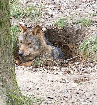 А произошла эта история вечером, я со своей сестрой катался на велосипеде, было часов шесть вечера, но еще светло. Вдруг смотрю, сестренка оторопела и смотрит в противоположную сторону. Я оборачиваюсь – волк в метрах двухстах. Я сразу в панику, но вспомнил, о чём старшие наставляли, быстро сестру за руку взял и к деревьям пошел, благо рядом большой старинный дуб был, а на нем дощечки прибиты в виде лестницы. На этом дубе раньше кто-то пытался построить дом на ветвях, но так и не достроили его, и остались только пару досок, которые должны были быть полом этого строения. Мы на них и расположились. Сидим, ждем, пока волк убежит. А он ведь не бежит. Медленно так, не торопясь, идет в сторону дуба, не сворачивает. А я смотрю на него и понимаю что он какой-то не такой, благо волков там навидался, большинство только мертвые были, но, в принципе, представлял себе, что такое волк – большой, лохматый, желтые глаза. А этот был совсем другой, вот только я не мог понять, что в нем не так. Подходит, значит, этот волк к нашему велосипеду и давай грызть покрышки. Сначала первую, затем вторую. Перегрыз, подошел к дереву, поставил передние лапы на ствол дерева и на нас смотрит. Тут то я и понял, что с ним не так. На спине горб огромный, и глаза – не желтые, а красные, вот только не зрачки, а полностью весь глаз красный, как кровь. Вот тогда то мне на самом деле страшно стало, по телу дрожь. Сестра тоже как увидела, сразу разревелась. А волк стоит и не отходит, сел возле велосипеда и мне в глаза смотрит. Сестра все ревет и ревет, я у неё спрашиваю, мол, чего ты так разревелась, а она только сильнее плачет и маму зовет. Докричатся не до кого, до ближайшего дома, где-то километра с пол, и посадка между нами.