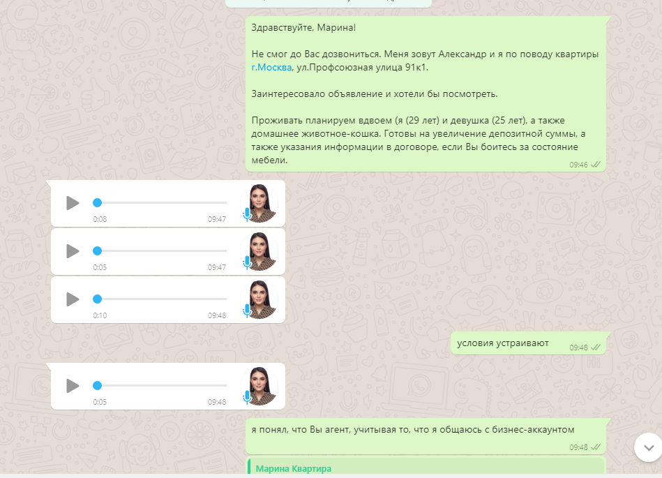 Всем привет! Ранее в этом эссе я описывал основные моменты, которые меня крайне расстроили и создавали множество проблем. Одна из таких проблем, непосредственно, была связана с некоторым числом мошенников, которые попадались мне на пути к моей цели. Об одном из таких мошенников и его методе я бы хотел рассказать поподробнее. Дисклеймер: у меня нет конкретных доказательств того, что человек, с которым я общался – мошенник, т.к. я фактически денег не лишался, потому что мне сама ситуация показалась крайне странной. Мое мнение основано исключительно на моем субъективном взгляде. Объявление К сожалению, я не могу предоставить ссылку на объявление, потому что оно было удалено. Наткнулся я на данную квартиру во вконтакте. Её адрес: г. Москва, ул. Профсоюзная, д. 91, корп. 1. Хорошо обставленная, подходящий мне район, цена средняя. Разумеется, я решил сразу позвонить, т.к. объявление было свежее и, возможно, я окажусь первым и единственным желающим. На мой звонок трубку никто не поднял, зато