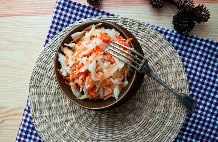 В этом салате есть не только свежая белокочанная капуста, но также морковь и хрен. Поэтому он идеально подходит для зимнего сезона, когда помогает защитить от простуды даже в начале простуды. Определенно побалуйте себя этим. Рецепт | Салат из белокочанной капусты Откуда: Чехия из Чешской Республики Ингридиенты Метод: Шаг 1 Капусту нарезаю тонкой соломкой, морковь натираю на крупной терке и мелкий хрен. Шаг 2 В чашке смешайте сахар и соль с водой и небольшим количеством масла по вкусу, можно использовать немного уксуса и вылить смесь в салат. Тщательно перемешайте, при необходимости добавьте ароматизатор и перец по вкусу и дайте ему немного постоять в холодильнике перед подачей на стол.
