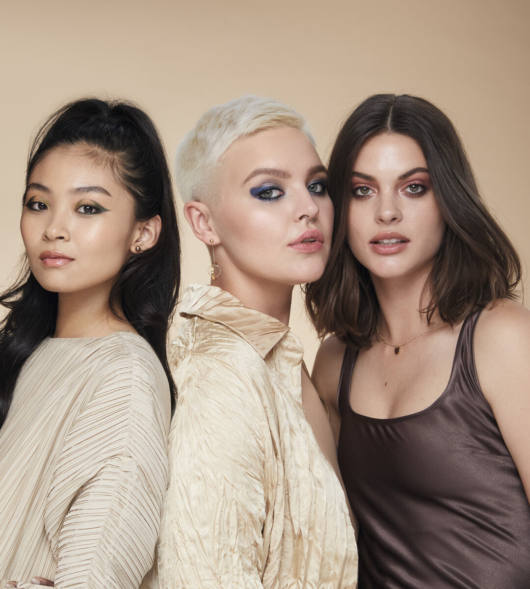 Макияж глаз в золотисто-оливковых тонах — универсальный вариант как на каждый день, так и для вечернего образа. Главная фишка здесь — использование техники cut crease, которая предполагает создание четко очерченной границы, как если бы мы использовали вместо теней лайнер. Но если хочется сделать этот макияж более повседневным, можно просто отказаться от нее и растушевать тени привычным образом.