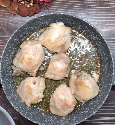 Обжариваем на растительном масле куриное мясо до золотистого цвета, убираем. На этом же масле обжариваем картофель до золотистого цвета.
