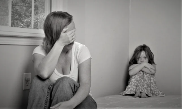 Придерживая в одной руке дитя, она осторожно спускалась выходя из подъезда, она не могла смотреть на ступеньки, или открыть дверь, ведь вторая её рука была занята большим пакетом с вещами младенца.