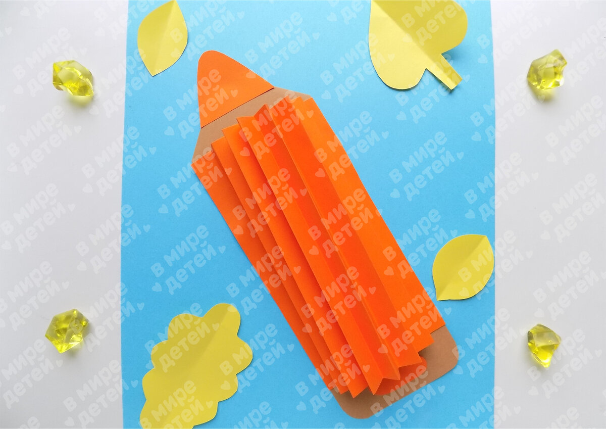 Поделка своими руками ко Дню учителя станет отличным подарком любимому преподавателю или воспитателю. В сегодняшнем мастер-классе мы покажем, как из цветной бумаги изготовить простую аппликацию, с которой самостоятельно справится ваш ребенок. Необходимые материалы: · бумага цветная; · клеевой карандаш; · ножницы. Этапы изготовления: Шаг 1 Центральным элементом данной поделки будет карандаш, сделанный из разного цвета. В качестве основы для него возьмем форму прямоугольника, вырезанного из коричневой бумаги, размер изделия 8х21 см. Шаг 2 Загибаем симметрично кончики с одной из коротких сторон. Шаг 3 Такая основа для карандаша у нас получилась. Шаг 4 Лист оранжевого цвета разрезаем пополам. Для создания карандаша нам достаточно одной части. Сгибаем ее пополам. Шаг 5 Затем еще несколько раз продолжаем складывать в том же направлении. Наша заготовка приобрела вид узкой полоски. Шаг 6 Так мы наметили сгибы, которые позволяют нам сложить оранжевую заготовку в виде «гармошки». Шаг 7 Приклеива