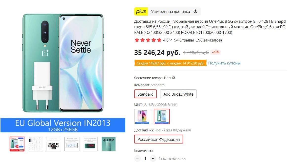 Смартфон OnePlus 8 5G 12/256Gb за 32246₽ с промокодом: WOWLIKE3000 на AliExpress. Отличная цена на этот смартфон. Экран 6.55” с частотой 90 Гц, процессор Snapdragon 865, тройная камера, аккумулятор 4300 мАч. Везде от 38000₽. #технологии и интернет #игры