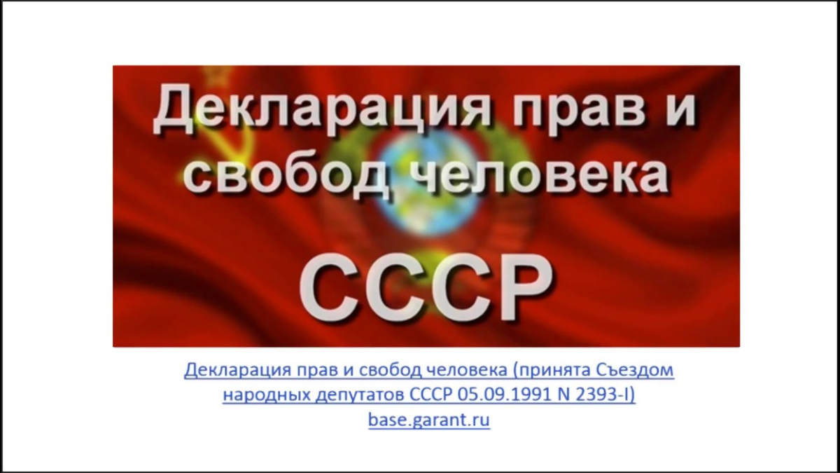 Руководствуясь общими принципами демократии, гуманизма, социальной справедливости и исходя из уроков собственной истории, Съезд народных депутатов СССР принимает настоящую Декларацию».