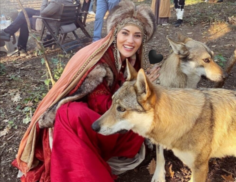 Прекрасный образ Фахрие Эвджен. Фото с волками со съёмок сериала Альпарслан