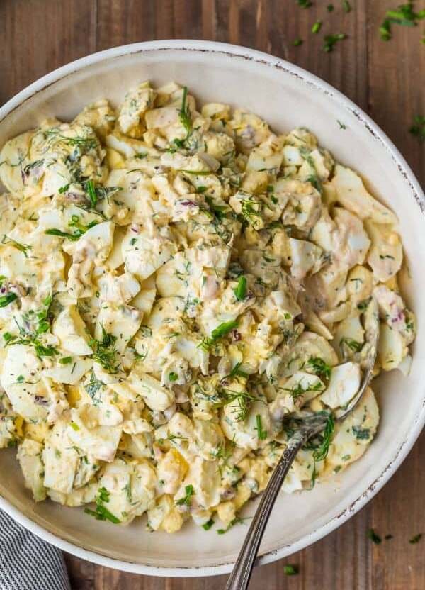 Рецепт салата из яиц Это самый простой яичный салат и идеальный способ израсходовать остатки пасхальных яиц,например. Вам понравится короткий список ингредиентов, но это все, что вам нужно для приготовления одного восхитительного салата: яйца вкрутую, зелень, хрустящий лук в самой сливочной заправке. Его можно подавать по-разному - как гарнир, тосты и т. д. Ингредиенты для яичного салата Хотя это простой рецепт и в нем используются основные ингредиенты, вкус у него потрясающий,так же можно добавить: Лучшая заправка для салата из яиц Заправка в любом салате действительно может изменить рецепт или испортить его. Эта потрясающая сливочная заправка придает аромат простому салату. Яйца никогда не были такими вкусными! Как приготовить яичный салат 1. Рецепт салата из яиц Это самый простой яичный салат и идеальный способ израсходовать остатки пасхальных яиц,например. Вам понравится короткий список ингредиентов, но это все, что вам нужно для приготовления одного восхитительного салата: яйца вк
