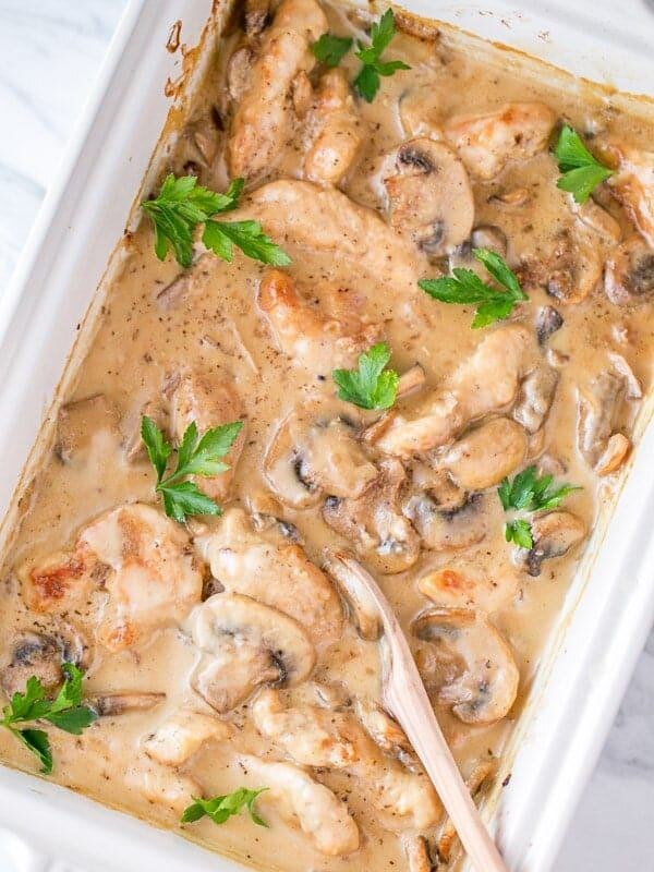 Сливочная куриная запеканка с грибами - сокровище. Вы точно оцените этот нежный вкус и никогда его не забудете. Ингредиенты для куриной запеканки Ингредиенты для этого рецепта на удивление просты: Сливочная куриная запеканка с грибами - сокровище. Вы точно оцените этот нежный вкус и никогда его не забудете. Ингредиенты для куриной запеканки Ингредиенты для этого рецепта на удивление просты: Как приготовить куриную запеканку 1.Обжаренная курица: приправить курицу солью, перцем и обвалять в муке. Нагрейте 3 столовые ложки масла в большой сковороде на среднем / сильном огне. Когда масло станет горячим, добавьте курицу и обжарьте до золотистого цвета, а затем переложите в форму для запекания . 2. Обжарить грибы: добавить 3 столовые ложки масла и обжарить грибы и лук до мягкости и золотистого цвета. Добавить чеснок и обжарить еще 1-2 мин. Распределите смесь по курице. 3. Приготовьте соус: в кастрюле среднего размера (или на той же сковороде, которую вы использовали) растопите 3 столовые лож