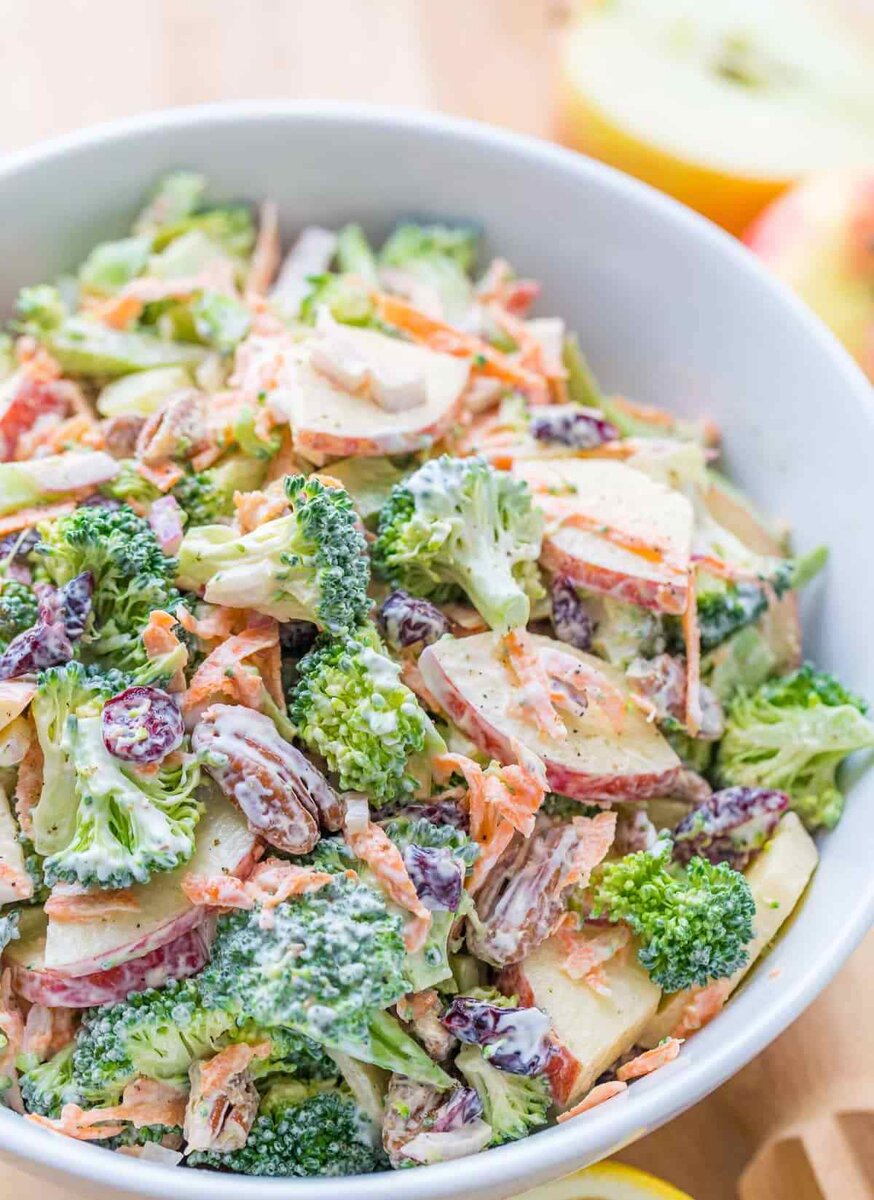 Ингредиенты для салата из брокколи У этого салата короткий список ингредиентов, но каждый из них важен для него. Его вкус сладкий, терпкий и свежий. Лучшая сливочная заправка Эта сливочно-лимонная заправка для салата сочетает в себе майонез, сметану, свежевыжатый лимонный сок, соль и перец. Сметана делает эту сливочную заправку светлее, а лимон придает яркий свежий аромат. Как приготовить салат из брокколи 1. Поджарьте грецкие орехи на сухой сковороде на среднем огне, часто помешивая, в течение 3-5 минут, затем переложите на тарелку, чтобы они остыли. 2. Смешайте ингредиенты салата - поместите все нарезанные, измельченные и мелко нарезанные ингредиенты салата в миску. 3. Приготовление заправки - перемешайте ингредиенты заправки для салата, добавив лимонный сок и сахар по вкусу. 4. Перемешать и подавать - Добавьте к салату заправку по вкусу и перемешайте, пока она не покроет заправку. Все готово, на приготовление уйдет не более 15 минут, но вы удивитесь, насколько это вкусно. Приятного