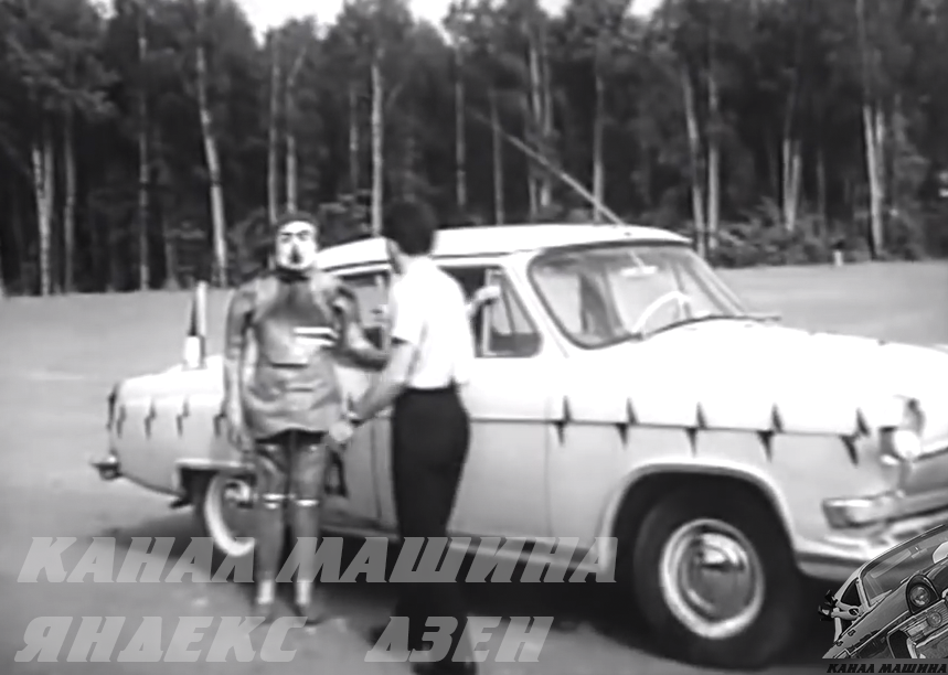 Причем Михалыч у нас более сознательный гражданин, поэтому специально для него в салон «Волги» для эксперимента смонтируют диагональный ремень безопасности: с единственной лямкой, которая будет свисать с центральной стойки и защелкиваться на диване справа от водителя. Вот на этом снимке можно заметить ремень: