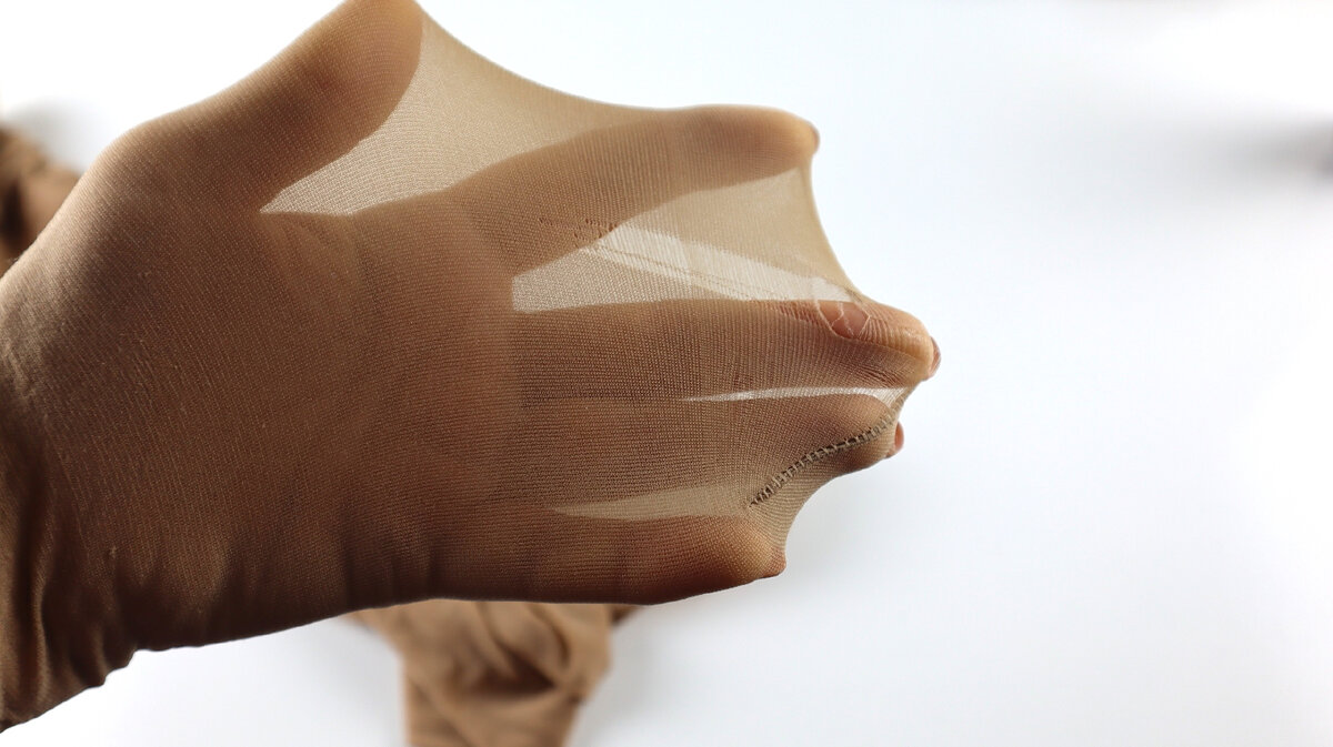 Перед тем как надеть колготки надо сжать их гармошкой и постепенно подтягивать их вверх, равномерно распределяя капрон.