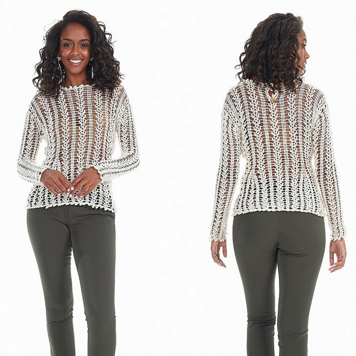 Не буду повторяться и говорить о том, что крючком я вяжу очень мало (и всё-таки повторилась ☺), но это не мешает мне любоваться крючкотворными творениями и делиться интересными идеями с вами! Сохраняйте в свою копилочку! Для увеличения изображения откройте его в новой вкладке, при необходимости увеличьте шрифт с помощью комбинации на клавиатуре ctrl+ Крючок № 1 ✰ Нарядный белый джемпер простым сетчатым узором — классика на все времена. Хотя сейчас больше была бы актуальна модель более свободного кроя, можно даже оверсайз. Получилось бы стильно и молодёжно! Схемы вязания и выкройка. Крючок № 2 ✰ Мягкий и уютный свитер Lala Berlin от Lana Grossa, связанный из чудесной твидовой пряжи (сразу и не заметишь эти милые цветные вкрапления).