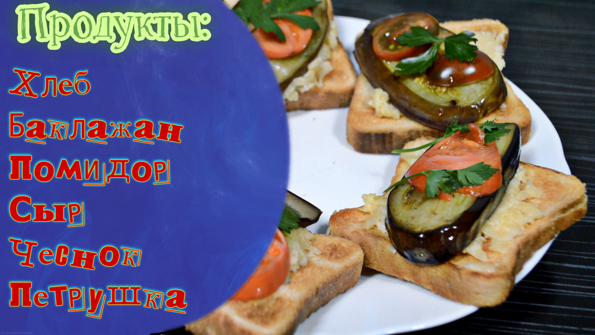 Здравствуйте, сегодня я приготовлю бутерброды с баклажанами, помидором, сыром и чесноком. Если вам лень читать, то вы можете посмотреть этот видео-рецепт: Для приготовления бутербродов нам понадобятся следующие продукты: Первым делом поджариваем хлеб. Я поджаривал в тостере, но если у вас его нет, то ни чего страшного, поджарить можно и на сковородке с добавлением чуть чуть растительного масла. Далее подготавливаем нашу сырно-чесночную намазку. Натертый на терке сыр смешиваем с натертым чесноком и добавляем немного майонеза. Перемешиваем все в однородную массу и намазываем тонким слоем на хлеб фото листать вправо ›››››››››››››››› Нарезаем пластинами баклажаны, толщиной примерно 0,5 см и обжариваем на сковороде с растительным маслом с двух сторон. Выкладываем их сверху нашего бутерброда фото листать вправо ›››››››››››››››› Далее, нарезаем спелый, свежий помидор, толщина примерно такая же, как у баклажанов. Выкладываем сверху и украшаем листиком петрушки фото листать вправо ››››››››››››