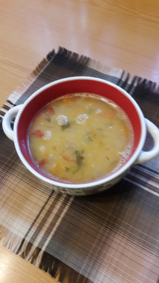 И одна небольшая хитрость, которой меня научили ещё в студенческие годы. Можно добавить в суп немного сливочного масла. Я добавила чайную ложку. К тому же свиное копчёное ребро, которое я добавила в суп, было весьма небольшим. Так что сливочное масло не помешало.