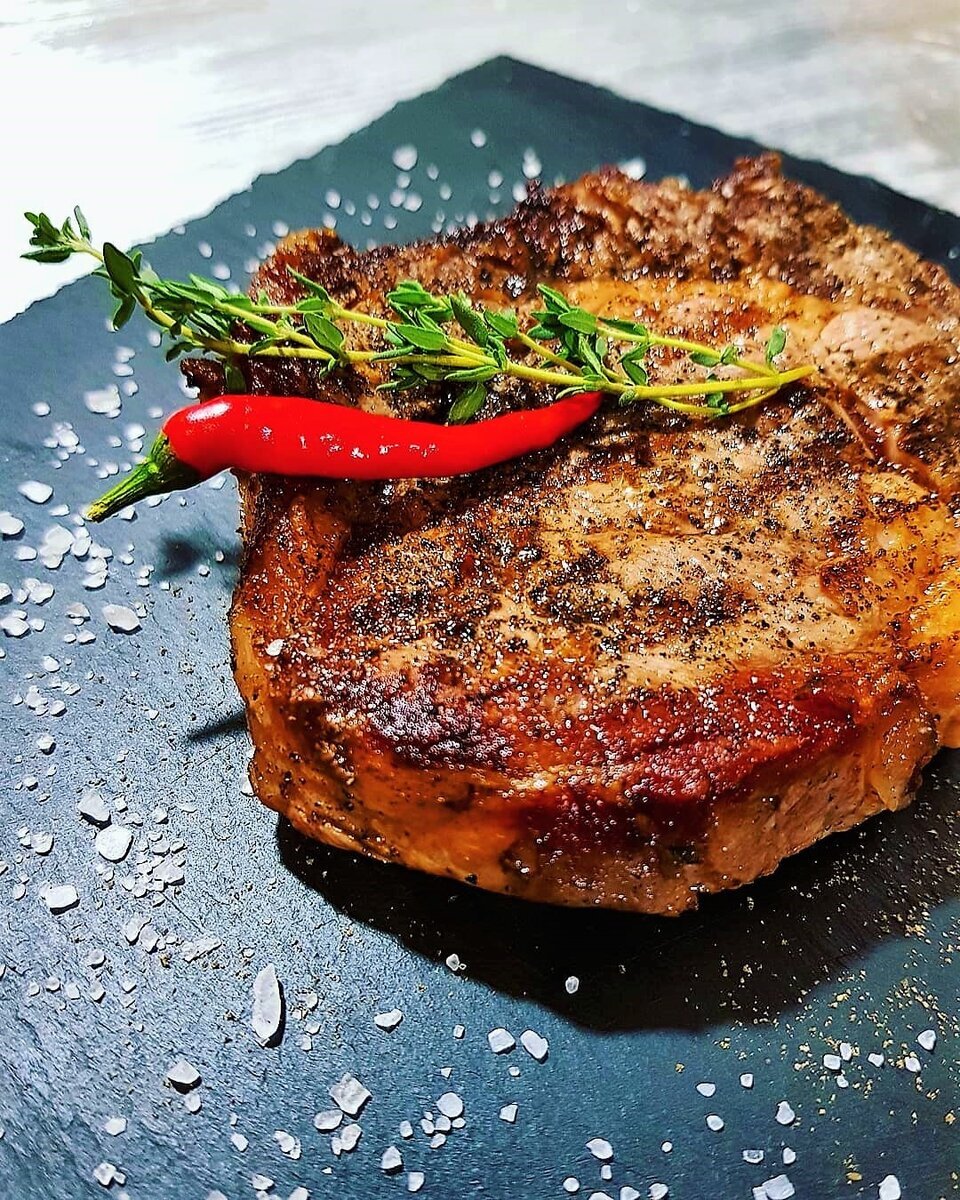 Немного из истории, практически у каждого человека стейк ассоциируется с внушительным куском мяса, который готовится на открытом огне до определенной степени прожарки. Вы правильно так считаете потому, что это отголоски наших предков. И что нельзя точно сказать кто первый придумал так готовить мясо. Самый первый рецепт приготовления стейка описан в книги рецептов в 1460 году, автор которой британец Балтинус Платинус. Приготовление стейка это культ и не даром в мире столько кафе и баров, которые готовят мясо на огне. А жители Техаса уверено считают стейк своим национальным блюдом. Все читатели данной статьи живут в России и тоже могут не хуже Техасцев жарить мясо. Мы сегодня с Вами будем готовить стейк дома на простой сковородке и не из самого дорого куска свиной шеи. -----****************----- На сегодня Ваши ингредиенты: Начнем готовить: -Начнем готовку с мяса можно купить кусок свиной шеи и нарезать его на порции или купить уже готовые в упаковки стейки (мне нравится от Черкизов
