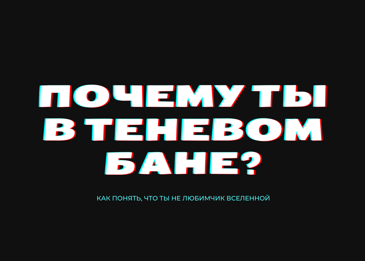 Чтобы выйти из теневого бана, достаточно встать с дивана, найти решения своих проблем и начать двигаться к ним используя связь со Вселенной. Секретного способа не существует, ты не сможешь изменить свою жизнь по щелчку пальцев и Вселенная никак тебе в этом не поможет. Тебе пора проснуться, пора изменить мышление, расширить его, понять, что ты способен горы свернуть, ты же человек, у которого есть руки, ноги, мозг, глаза. Ты прекрасно видишь и слышишь, ты просыпаешь по утрам. Тебя придумали не для твоей приземленной жизни, а для чего то бОльшего. Подумай над этим.
