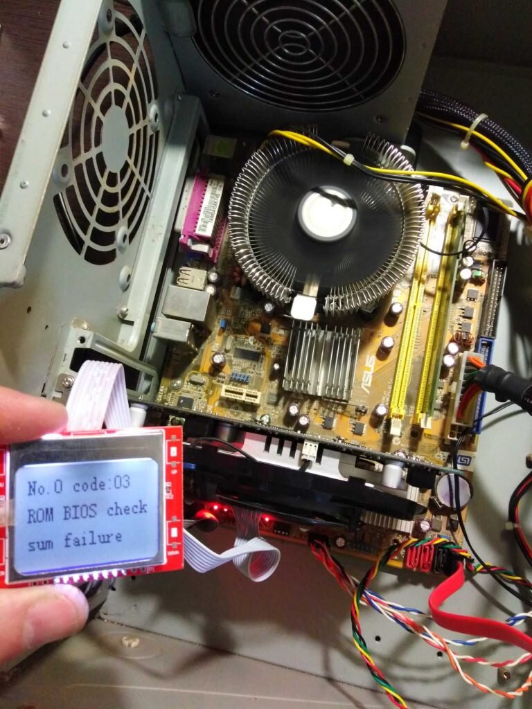 Парни говорят, что комп когда-то работал) Подключаем пост карту и сразу видим в чем дело.