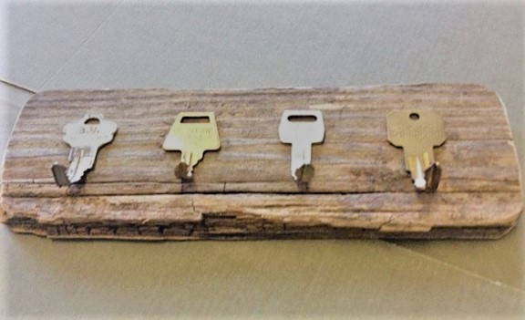 1. Отличные крючки-подвесы для одежды или дверные рукоятки получатся из мелких деревянных фрагментов симпатичной текстуры. Такие элементы обрабатываются вручную, шлифуются и даже покрываются лаком. Крепится изделие с помощью шпильки с резьбой. Можно использовать и клей (но в этом случае лак использовать не рекомендуется, также придется отказаться от шлифовки).