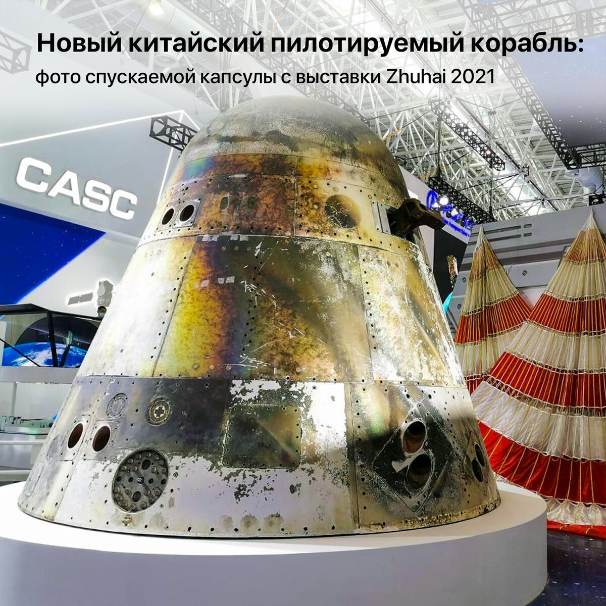 Вчера на проходящем в Чжухае авиашоу Китай показал спускаемую капсулу пилотируемого корабля нового поколения, который совершил свой первый тестовый полёт в мае 2020 г. Разрабатывается два варианта корабля. Первый — для замены кораблей Shenzhou и миссий различной длительности на НОО/доставки тайконавтов на национальную орбитальную станцию (6—7 человек либо 3 человека и до 500 кг грузов).