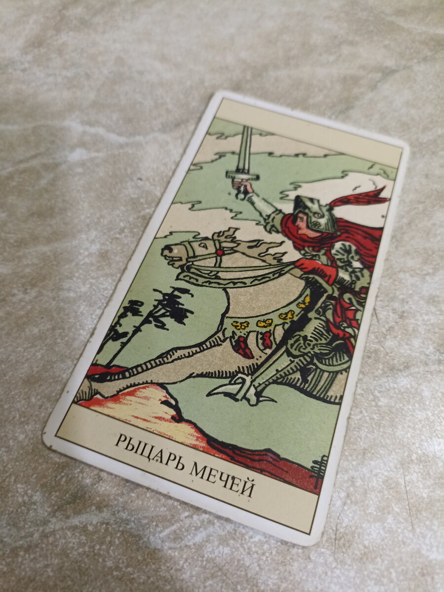 Карта дня рыцарь мечей. День пройдет в движении, глаза вас не подведут, увидите то чего ранее не замечали. Язык не подведет будет острым как меч. Ум будет ясным. Могут быть внезапные отъезды, встреча с более высокопоставленным лицом. В спорах и конфликтах победа будет за вами. Встреча с рыцарем мечей. В отношениях могут быть конфликты и споры, в работе тоже самое Старайтесь не уходить от конфликта и сохранять трезвую голову.