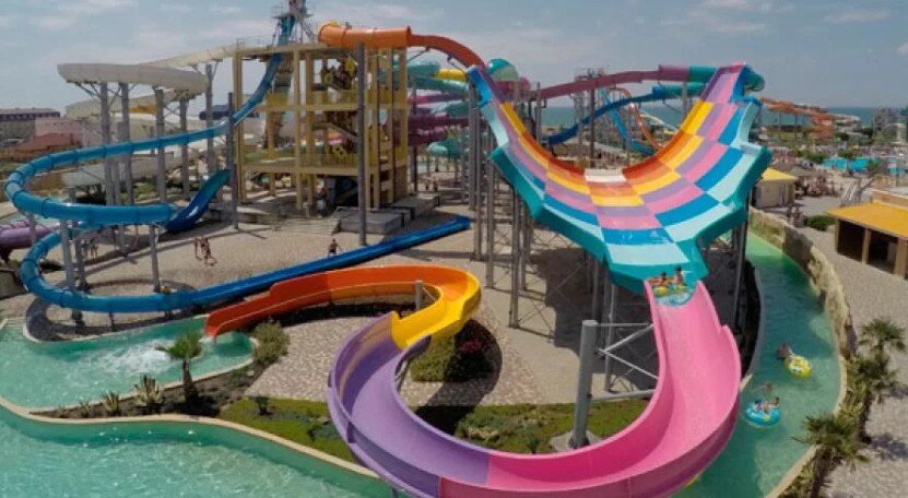 Здравствуйте уважаемые читатели блога. Отдых с детьми – чрезвычайно трудное время, потому что чада теперь находятся возле вас, а не под присмотром учителей, воспитателей и нянек. Куда отправиться с малышнёй, чтобы и следить было не сложно за ней, и самим развлечься, вспоминая детство? Конечно, в Крымский аквапарк. Спорим, вы ни разу не были в «Банановой республике»? А расположена она совсем близко от Евпатории на полуострове, который уже много веков омывает ласковое Чёрное море, а золотые пески так и манят окопаться в них надолго. Прямо из аквапарка открывается сказочный вид на загадочные солёные озёра и Каламитский заливчик. «Банановая республика» предлагает своим посетителям развлечься на водных аттракционах, расположенных в восьми огромных бассейнах. Для любителей пассивного отдыха предоставляются зелёные газоны с лежаками и шезлонги под тентами возле бассейнов. Для лёгкого времяпровождения подойдёт коктейль – бар и бассейн с гидромассажем. Для любителей фотографировать аквапарк и