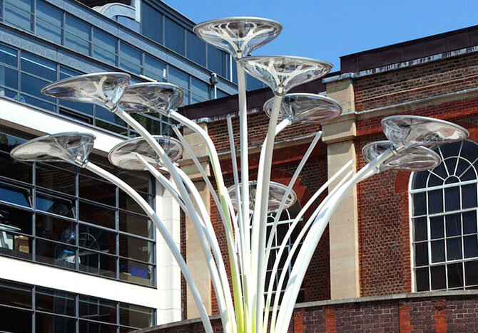 Первую в мире электронную лампочку изобрел Томас Эдисон более 140 лет назад. Благодаря такой технологии наша жизнь стала легче. Здесь мы покажем вам концепты, которые могут повлиять на будущее уличных фонарей. Солнечное дерево Росса Лавгроува Судя по названию не трудно догадаться, что лампы используют накапливаемую солнечную энергию для питания своих светодиодных ламп. Для работы днем лампы накапливают солнечную энергию во внутренние батареи, а вечером её используют. Дерево будет иметь до десяти листовых панелей, смотрящих в небо. Также дерево использует датчики света, чтобы включать лампы, когда солнце садиться. Фонарь-жираф У этого фонаря уже имеется два источника питания. Как прошлый фонарь этот питается солнечной энергией. Второй источник использует кинетическую энергию, которая вырабатывается за счет раскачивания качелей. Flowlight Фонарь имеет не имеет ничего общего с предыдущими фонарями, так как он питается за счет волн реки, которые преобразовываются в энергию. И в первую очер