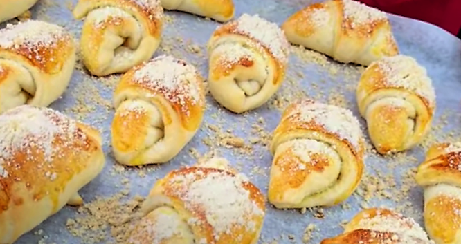 Рогалики с клубничным джемом и вареной сгущенкой Готовить такие рогалики не так уж и трудно простой рецепт. Выпечка получается воздушной и такой аромат стоит на кухне аж слюнки текут Ингредиенты: Для теста: 1 стакан теплого молока, 350 г муки пшеничной, 10 г. дрожжей сухих, 1,5 ст.л.сахара, 1 щепотка соли, 60 г. сливочного масла, 2 ст.л.сметаны, Для начинки: 100 г. клубничного джема, 100 г. вареной сгущенки, 1 ст.л.крахмала, Для крошки: 15 г. сахара, 30 г. муки, 10 г. сливочного масла, 1 яйцо, 1 ст.л.масла растительного, Приготовление: В молоко комнатной температуры добавляем дрожжи и размешиваем пока они не растворятся ставим в теплое место на минут 15. Дважды просеиваем муку в миску, в муку добавляем сахар и соль размягчённое сливочное масло сметану и тщательно растираем в крошку. Затем в мучную смесь добавляем дрожжевую болтушку, тщательно замешиваем тесто. Затем тесто скатываем в шар, накрываем пищевой пленкой и ставим в тепло на 1 час. Далее тесто делим на две части, раскатыв