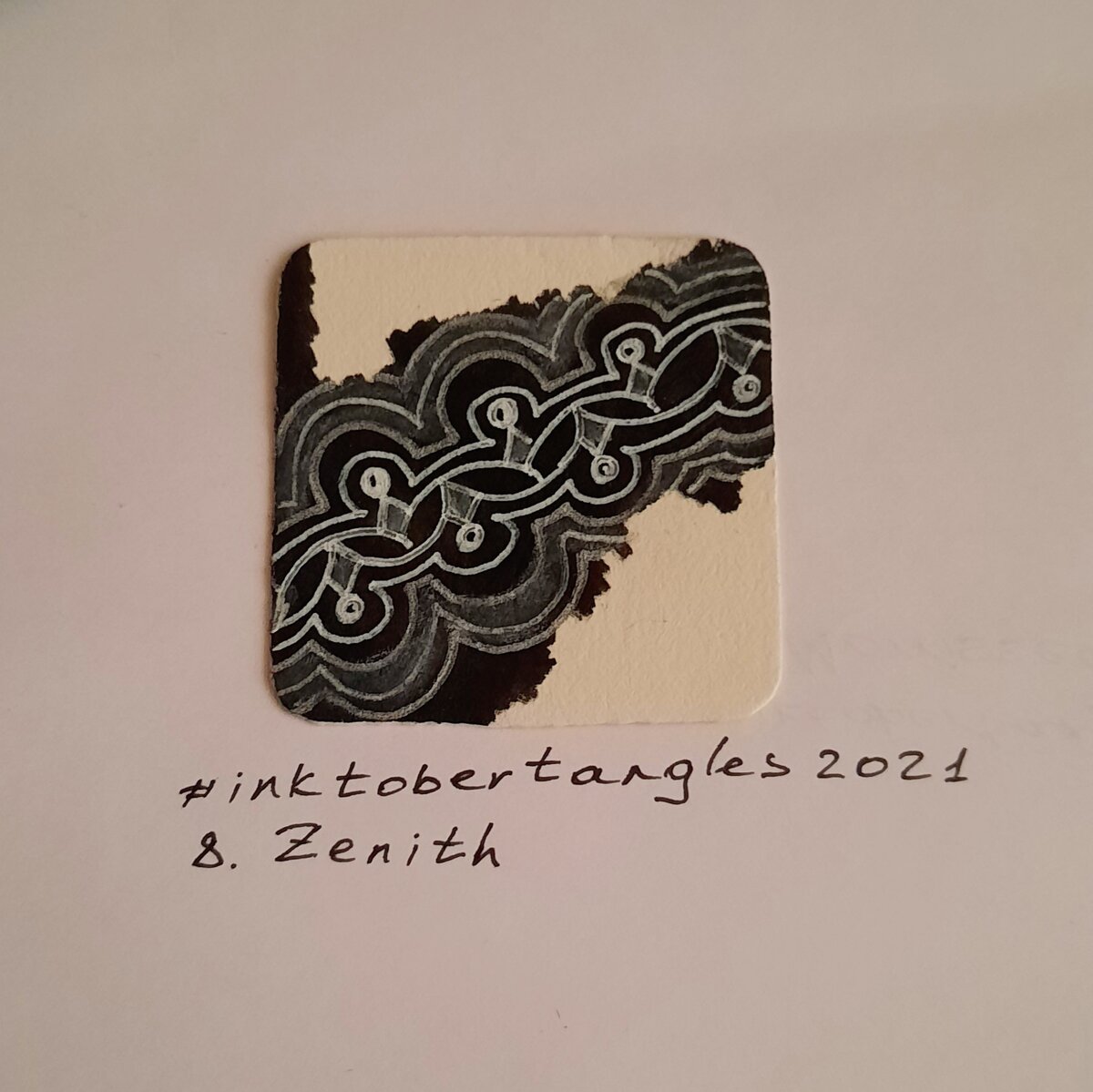 В восьмой день марафона #inktobertangles танглерам предложен тангл Zenith. Если вы Участвовали в прошлогоднем инктобере, тангл может быть вам знаком. В прошлом году Zenith был двадцать четвёртым танглом марафона. Мне он тогда не понравился, поэтому в этот раз я смотрела на него с предубеждением. Но не пропускать же день. Рисуется узор довольно просто. В этом году я немного видоизменила тангл, добавив кружочки-бусинки до того, как начинать рисование аур. Так мне понравилось больше. А ещё в процессе я поняла, что, пожалуй, могу даже и подружиться с узором. Может, он не войдёт в список любимчиков, но к этому я и не стремлюсь. А вам понравилось рисовать Zenith? Или ещё не пробовали?