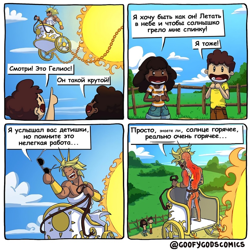 Забавные комиксы с необычным сюжетом — это то, что я всегда стараюсь найти для этого блога. Надо признаться, ежедневный поиск чего-то интересного часто заводит меня в тупик. Я начинаю рефлексировать на тему: это все уже было на канале, эту мамскую шуточку нарисовали все кому не лень, простенький #юмор наподобие "Я не высыпаюсь" с пририсованной солонкой, уже изрядно поднадоел. Хочется найти что-то такое интересное, чтобы при одном взгляде на эти #комиксы можно было влюбиться в персонажей и авторскую идею. За окном дождь и пасмурно, а осенний хмурый день — это лучшее время для просмотра веселых комиксов про богов древнегреческой мифологии. "А почему бы и нет?" - думаю я, и иду на страницу комиксов, где вся жизнь древнегреческих богов раскрыта как на ладони. Основные герои этих комиксов: Зевс, Аид, Персефона, Гея, Посейдон, верный пес Аида — Цербер, а также другие персонажи, которые вообще не понятно как оказались на Олимпе. На Олимпе всегда тепло и солнечно, герои мифологии разгуливаю
