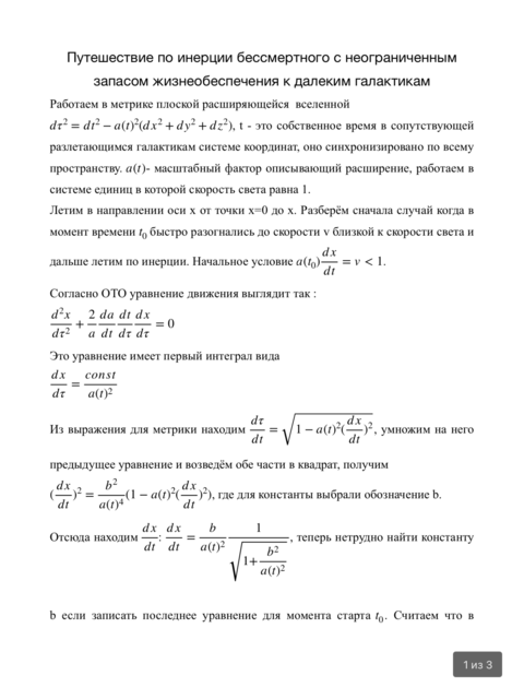Удивительные люди пишут иногда ответы на вопросы https://www.vokrugsveta.ru/articles/mozhno-li-dostich-kraya-vselennoi-id668771/. Зачем писать если не знаешь? Пассаж с определением края бесподобен. Я решил эту задачу точно для случая линейного по времени закона расширения и полета по инерции с набранной в месте старта произвольной скорости не превышающей скорости света. Приведенные выкладки позволяют легко записать решение в виде интеграла для любого степенного закона расширения. Ответ существует предельная координата, которой можно достичь. для настоящего времени это около 7 миллиардов световых лет.